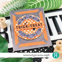 Next I added six little adorably spooky bats from our new set Spooktacular (with coordinating Confetti Cuts). Lastly the perfect sentiment which I stamped on a tag from Three Tags (I just removed the tag hole) and some enamel dots.